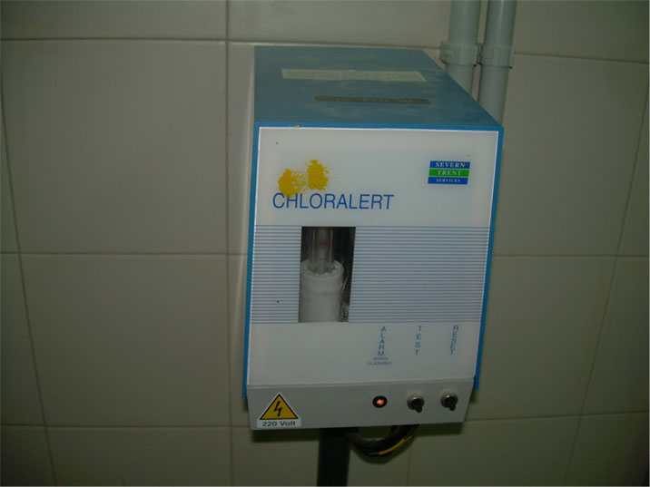 - Estar provisto de sistemas de detección (nº de detectores adecuado según características de los edificios y con actuación independiente) de cloro con alarma e indicación externa.